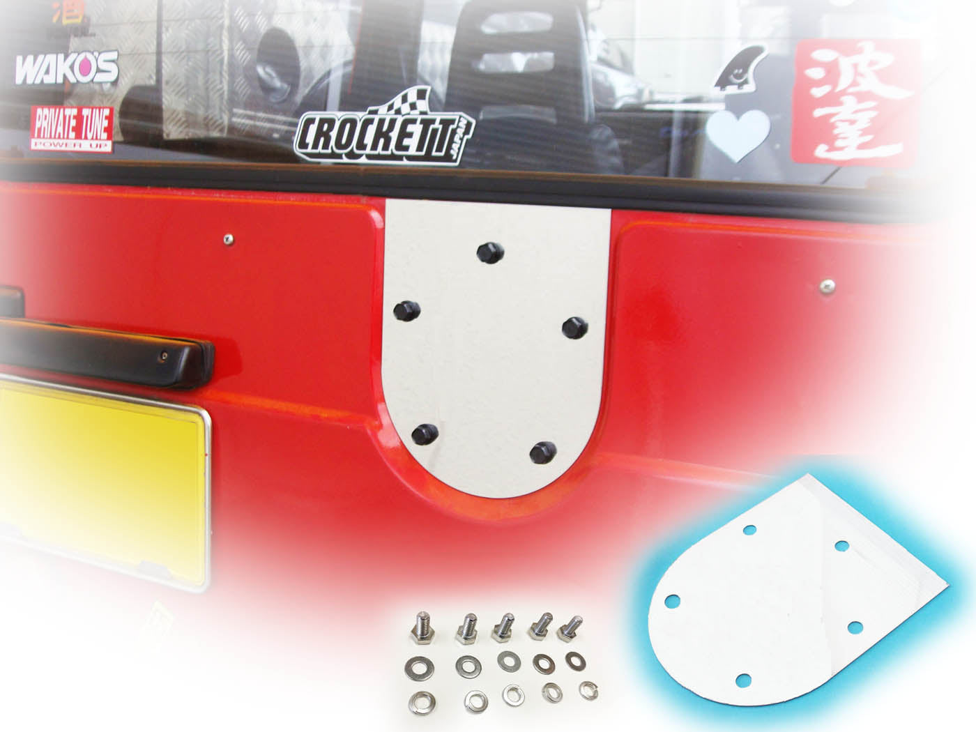 | 商品名 | ジムニー用ステンレス製スペアタイヤプレート+取り付けボルト(5式) |