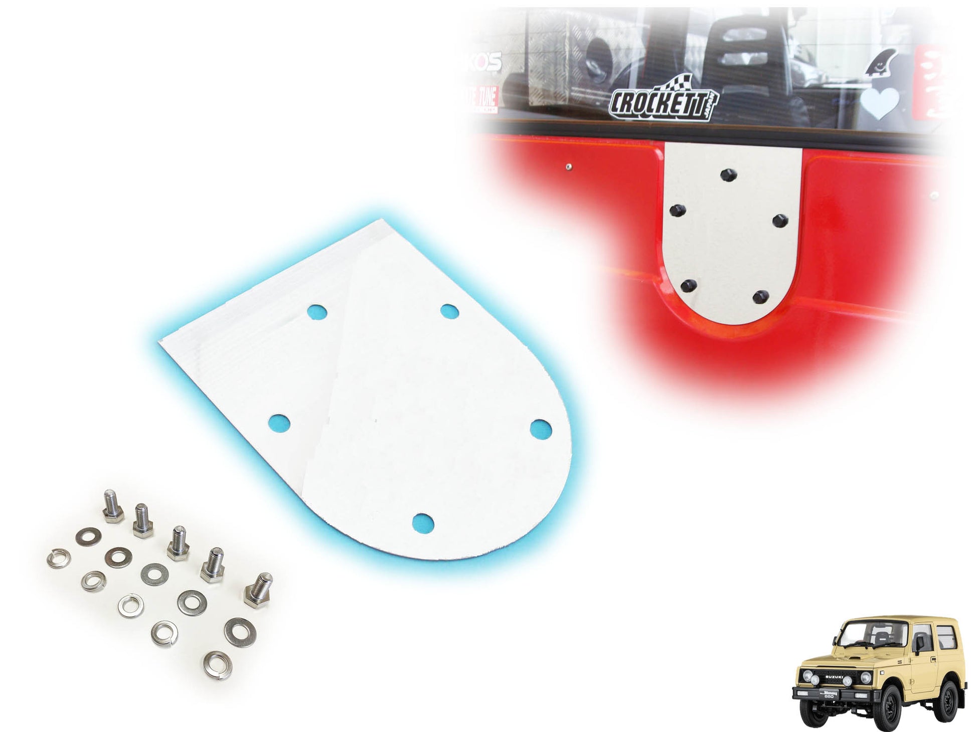 ジムニー用ステンレス製・背面パネル(スペアタイヤプレート)+取り付けボルト(5式) 適用車種:SJ30JA71JA11等