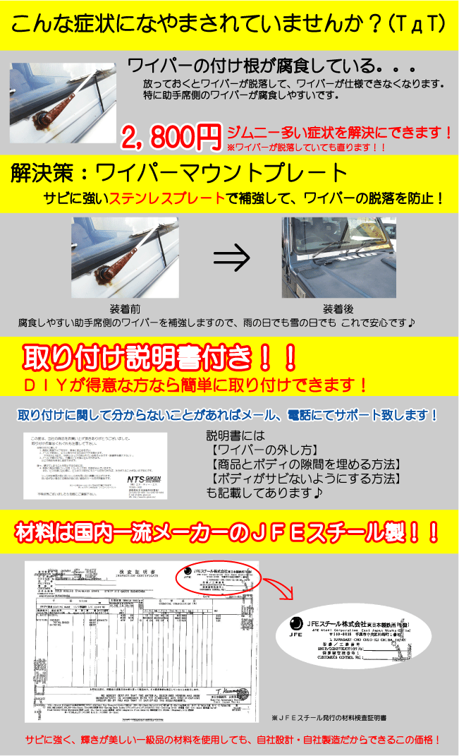 ジムニー用ステンレス製ワイパーマウント補強プレートType22 適用車種:JA12,JA22,JB32
