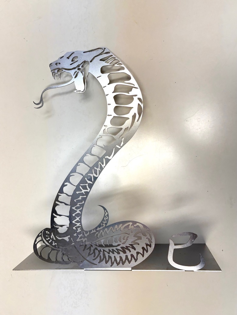 ※来年の干支の「巳」を、レーザー加工機にてステンレス鋼1.5ミリ厚をクリーンカットした写真になります。