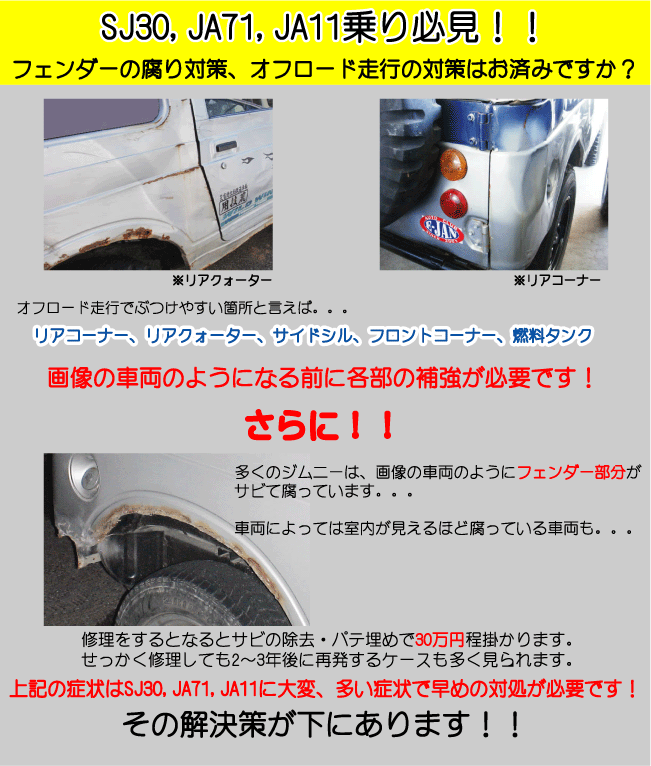 ジムニー用リアコーナーガード特大サイズ 適用車種:SJ30SJ40JA71JA11JA22