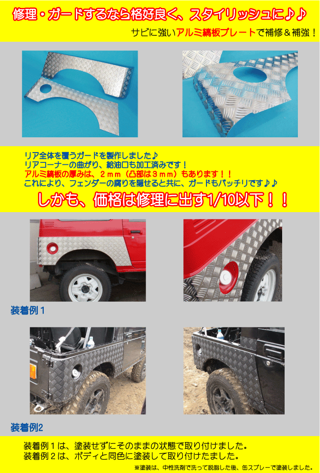 材料にアルミ縞板2.0mm(凸部は3.0mm)を使用しておりますので、強度にドレスアップにバッチリです♪