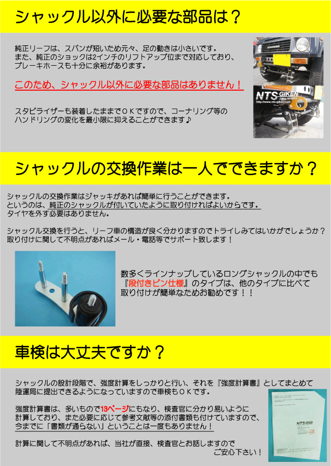 シャックルピンに段付きピンを採用することにより、シャックルプレートの曲がり、破損を心配することがなくなりましたので、初めてシャックルを交換する方でも簡単に作業を行えます♪