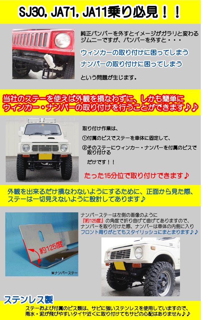 ジムニー用ウィンカー・ナンバー移動ステー 適用車種:SJ30,SJ40,JA71,JA,51,JA11,JB31