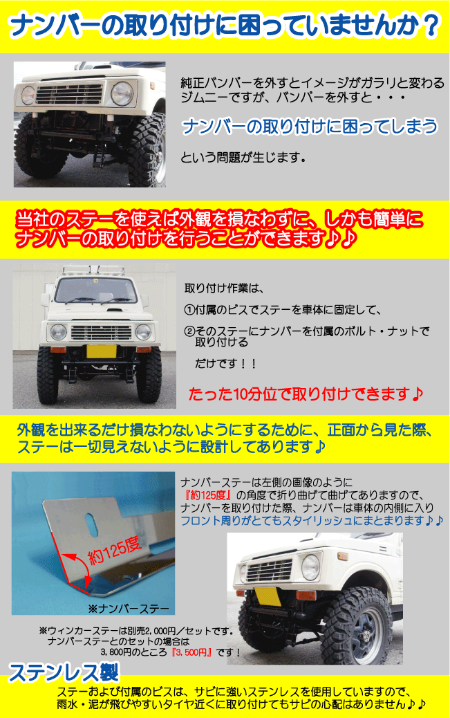 ジムニー用ナンバー移動ステー 適用車種:SJ30,SJ40,JA71,JA,51,JA11,JB31
