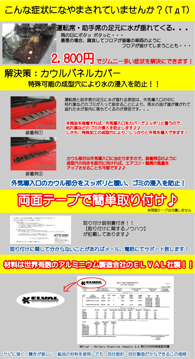 ジムニー用アルミ縞板製カウルパネルカバー 適用車種:SJ30SJ40JA71JA51 JA11JB31JA12JA22B32
