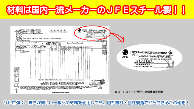 材料にステンレス1.5mm厚の鏡面材を使用しておりますので、強度にドレスアップにバッチリです♪