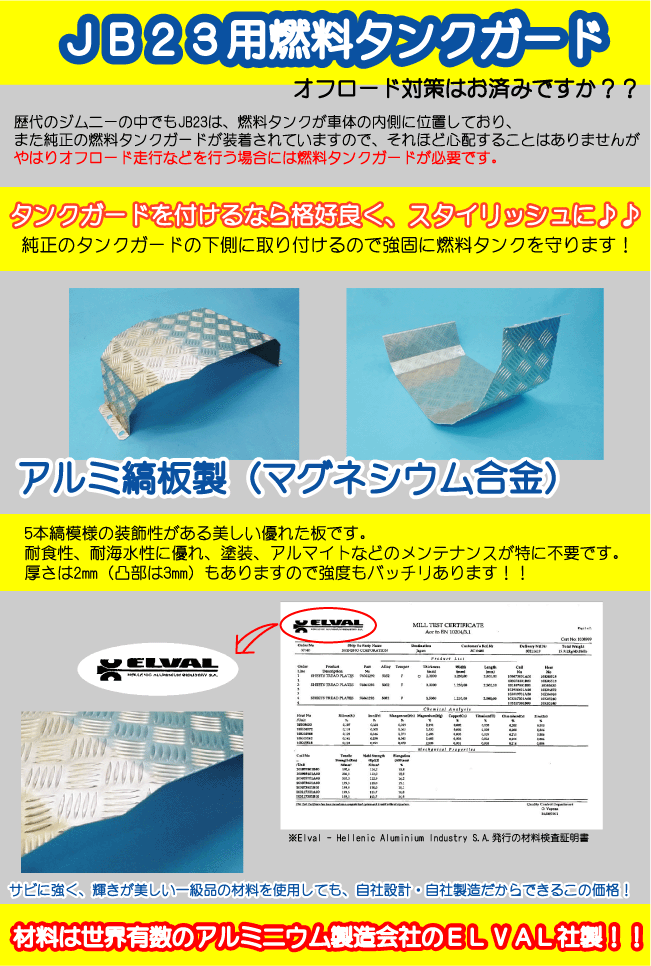 ジムニーJB23用アルミ縞板製燃料タンクガード