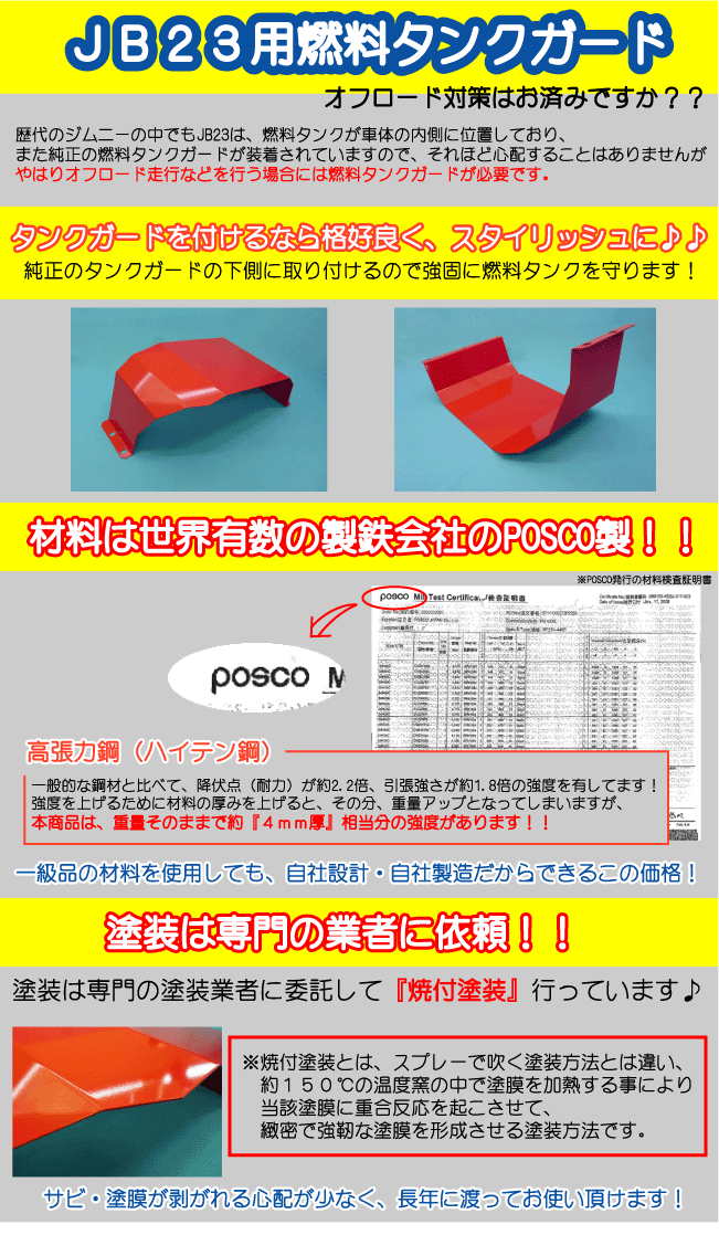 ジムニーJB23用ハイテン鋼【2ミリ厚】製燃料タンクガード(赤塗装済み)