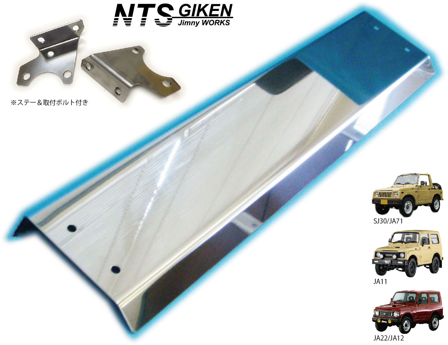 ジムニー用ステンレス製スキッドフロントバンパー 適用車種:SJ30,SJ40,JA71,JA,51, JA11,JB31,JA12,JA22
