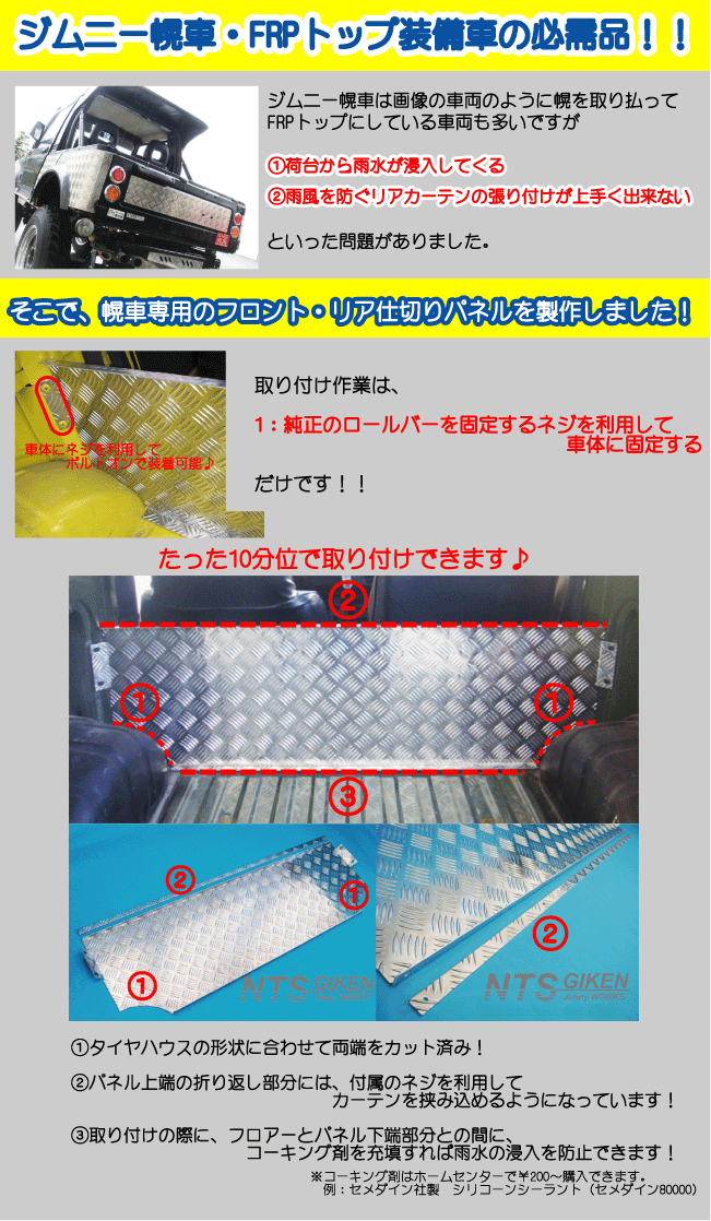 ジムニー【幌車】用フロント・リア仕切りパネル◆適用車種:SJ30,SJ40,JA71,JA,51,JA11,JA12