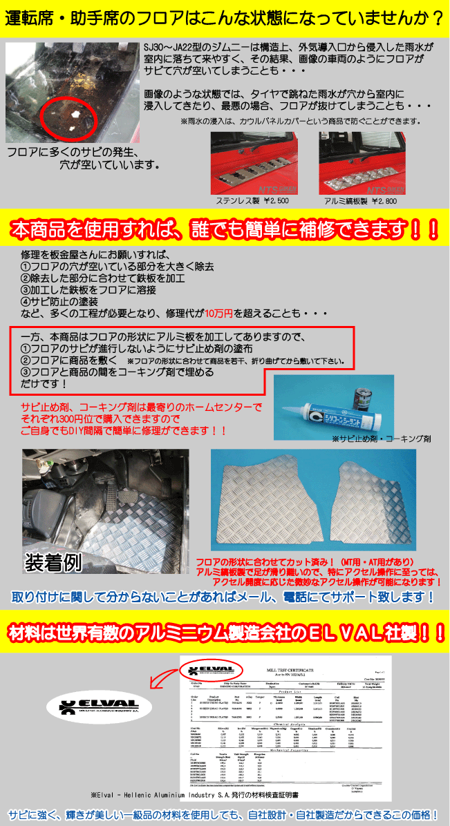 材料にアルミ縞板2.0ミリ厚(凸部は3.0ミリを使用しておりますので、強度にドレスアップにバッチリです♪強度は通常のアルミ板4.ミリ相当で、かつ軽量であるため、車両の省エネルギーにも貢献します♪