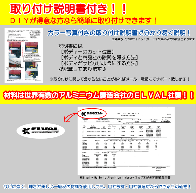 材料にアルミ縞板2.0mm厚(凸部は3.0mm)を使用しておりますので、強度にドレスアップにバッチリです♪強度は通常のアルミ板4.0mm相当で、かつ軽量であるため、車両の省エネルギーにも貢献します♪