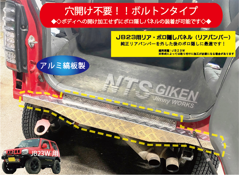 ジムニーJB23用リアセンター・ボロ隠しパネル【アルミ縞板製】 リアガード リアバンパー