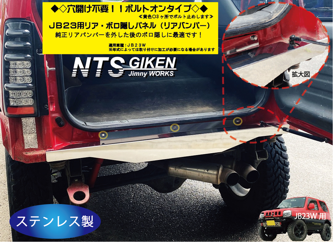 【穴開け不要!ボルトオン】ジムニーJB23用リアセンター・ボロ隠しパネル・ステンレス製 リアガード リアバンパー